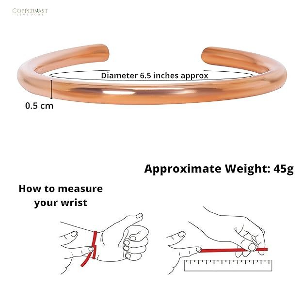 Copper is known to be an essential element in maintaining a healthy body. It acts as a brain stimulant and boosts immunity and energy. Helps in reducing symptoms of arthritis, it is believed that copper improves blood flow providing relief from arthritis, migraines, carpal tunnel and assists in the delivery of oxygen and nutrients to the body's tissues.