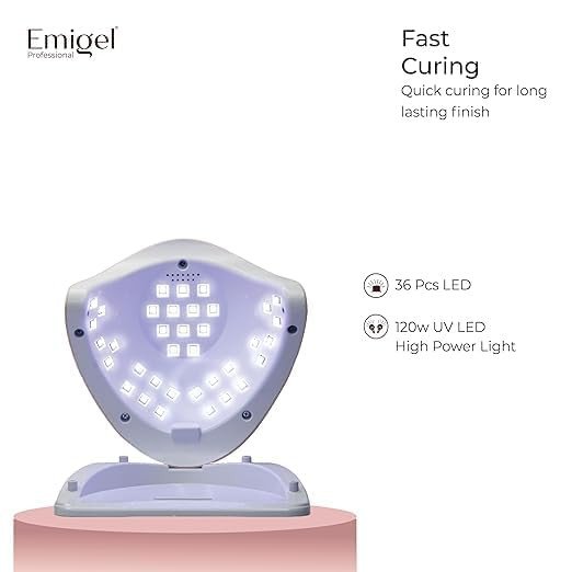 Emigel Nail UV Lamp 120W | Fast Dryer for Nail Gel Polish | UV Nail Curing Lamp | Professional UV Nail Lamp 2 in 1 UV LED Lamp Dryer | Large Space for Both hands | For Salon & Home Use. (120w)