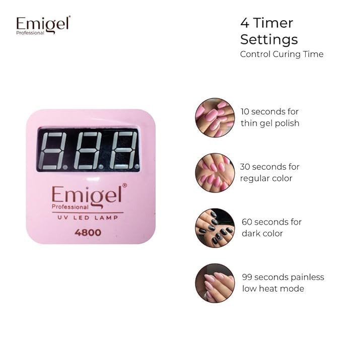 Emigel Professional 48W Nail LED UV Lamp | Fast Gel Polish Curing Lamp for All UV/LED Polishes | Auto Sensor & 3 Timer Settings | Salon-Quality Nail Dryer for Manicure & Pedicure