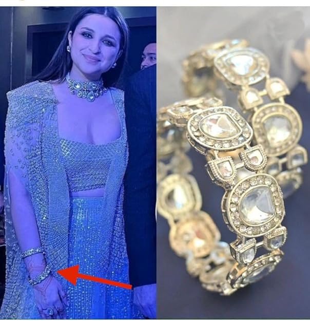 Crafted on a premium metal base with durable gold plating, it offers a comfortable fit and long-lasting shine. Perfect for weddings, festive occasions, parties, and bridal wear, this bangle pairs effortlessly with sarees, lehengas, anarkalis, and ethnic outfits.
