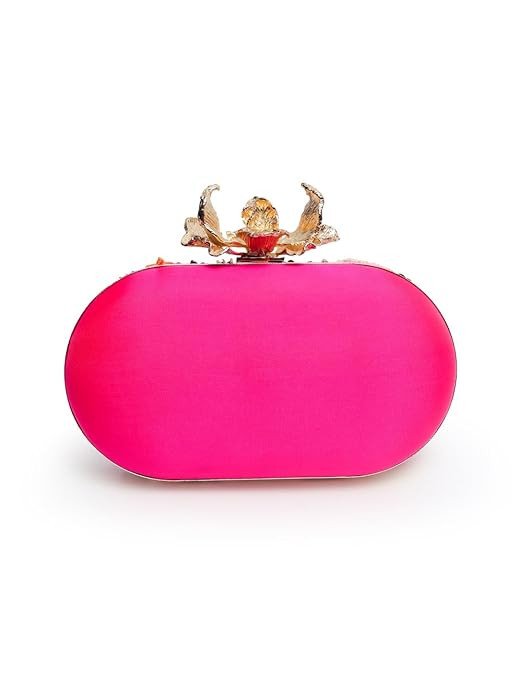 It is designed with a unique gold-toned artistic clasp on top, adding a luxurious and elegant touch. Compact yet spacious enough to carry your essentials like phone, cash, cards, and small makeup items, this clutch is ideal for weddings, parties, festive occasions, and special events.