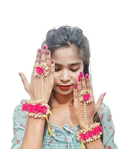 Flower Bracelets with Attached finger Rings(adjustable). 2 Items Hand Jewelry Set For