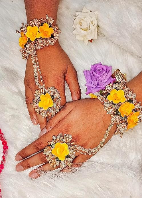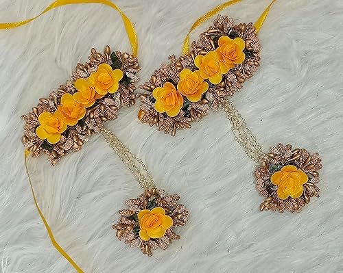 CIYA PLUS Beautiful Traditional Yellow And Golden Flower Jewellery Set For Mehandi/Haldi/Baby Shower . Light in weight & gives you a rich look. ,Free Size ,Weight less ,soft & easy to Handle .It is made of artificial flower & pearl mala. We are extremely happy to be serving thousands of customers across India and satisfying them with our unique designs that are not available anywhere else. Care – Please do not use water or chemicals clean it. Use dry cotton cloth to wipe the dust off. Wear these fancy earrings for women on ethnic occasions like marriage, wedding or traditional gathering with suit or Sari.