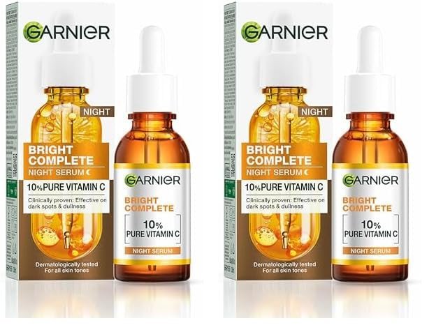 Garnier Bright Complete Night Vitamin C Serum With 10% Pure Vitamin C for Bright Skin, PM Routine Vitamin C Serum Suitable For All Skin Types, 15ml