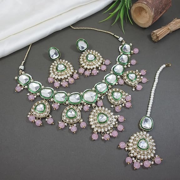 • Complete bridal set (Necklace + Earrings + Maang Tikka)