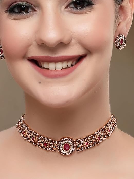 Shining Diva presents this latest stylish design fancy jewellery set. South Indian Gold Plated Choker Necklace Set with earrings. This fancy bridal wedding party wear choker Jewellery set for girls and women is made of pearl which looks stylish and goes perfect with any attire. This latest fancy jewellery set for women is perfectly suited for bridal wedding or party wear. Shining Diva is a well known brand across fashion jewellery sector. Shining Diva has huge collection of latest statement necklace jewellery, traditional necklace set, pendant set and other jewellery accessories which includes fancy bangles for women, wedding bangles, ear cuffs, traditional bangles kada, neck choker, fashion party wear necklace for girls and jhumki jhumka earrings. Shining Diva is pioneer of Imitation jewellery and designer pearl necklace set for women and American diamond hangings fancy party wear stylish Earrings. Shining Diva Fashion and Traditional jewellery give true value for your money. Buy Shining Diva trendy artificial jewellery from Amazon. These are also ideal for birthday gifts for girls, love valentine gifts for girlfriend, wedding gifts and anniversary gifts.