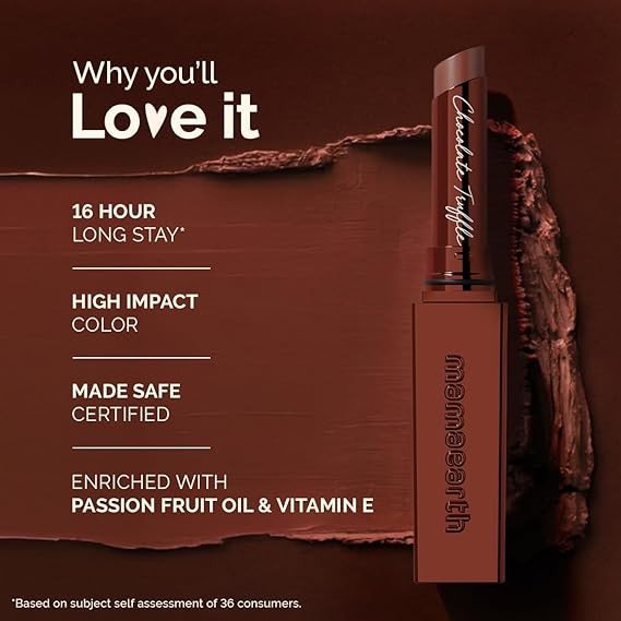 Mamaearth Luxe Matte Long Stay Lipstick with Passion Fruit Oil & Vitamin E -2g | Chocolate Truffle 16 Hour Long Stay | High Impact Color | Made Safe Certified