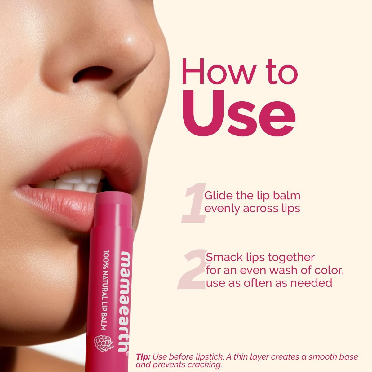 Mamaearth Nourishing Tinted 100% Natural Lip Balm With Vitamin E And Raspberry - 4 G|Gives 12-Hour Moisturization|For Dry&Chapped Lips|Naturally Pink Lips