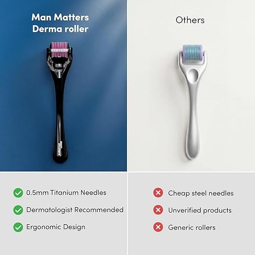 Man Matters Derma Roller With Disinfectant | 540 Micro 0.5mm Titanium Alloy Needles | Reduces Hair Fall & Stimulates Hair Follicles | Easy to use | Safe and Effective
