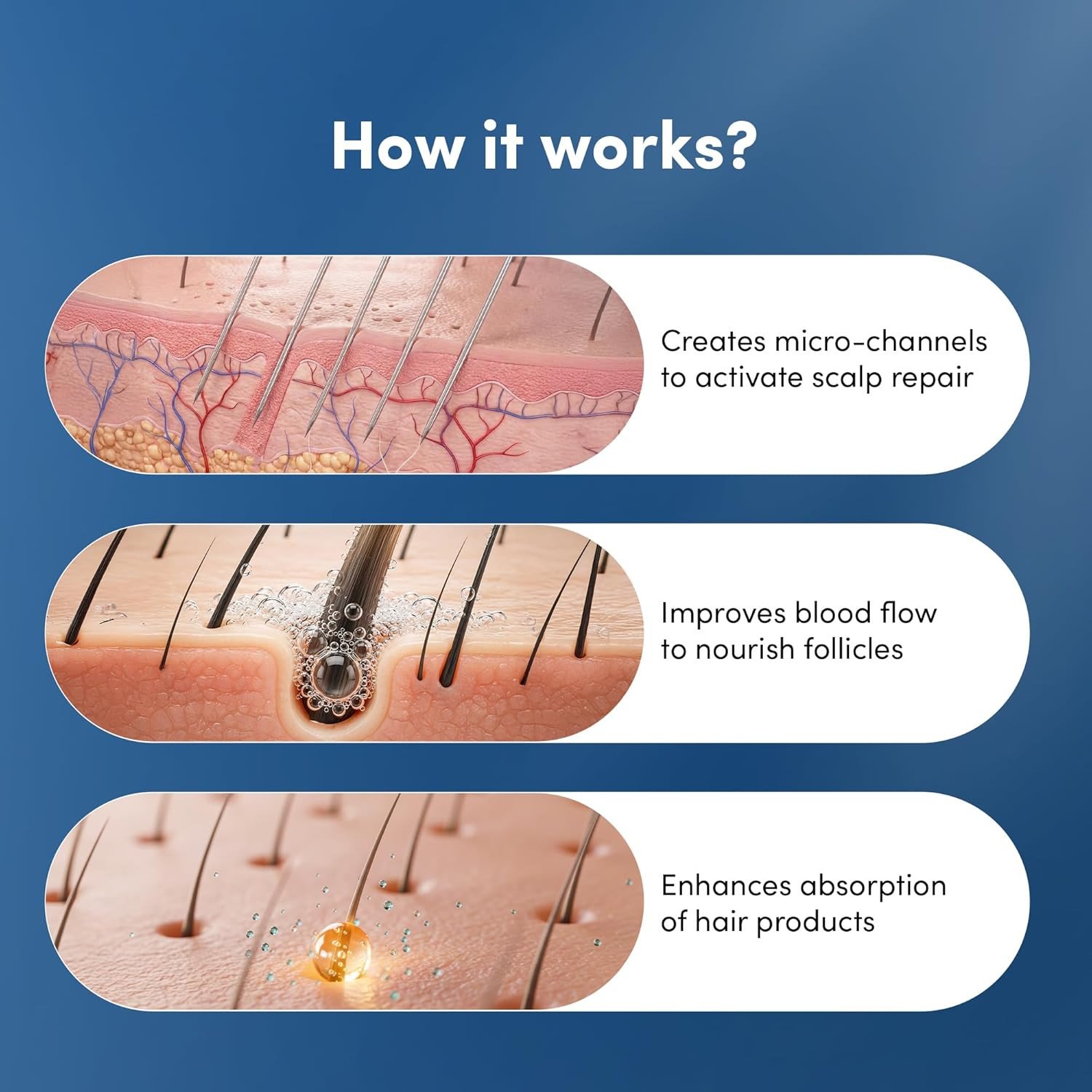 • EASY TO USE: Just roll vertically, horizontally, and diagonally on the coverage areas about 10 times before applying your favourite topical serum and oil to help them absorb properly in your scalp.