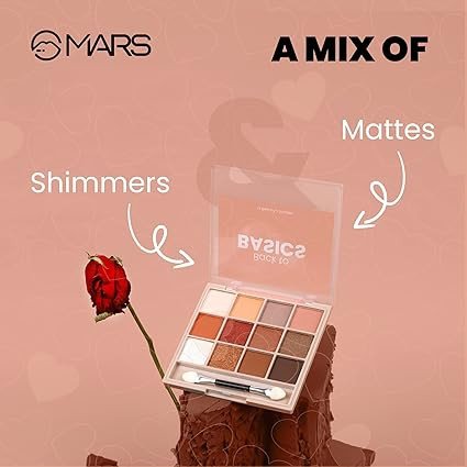 MARS 12 Shades Back to Basics Eyeshadow Palette with Free Applicator | Matte | Shimmer | Beginner Friendly & Long Lasting Eye Shadow Palette (14.4 gm) (Shade-02)