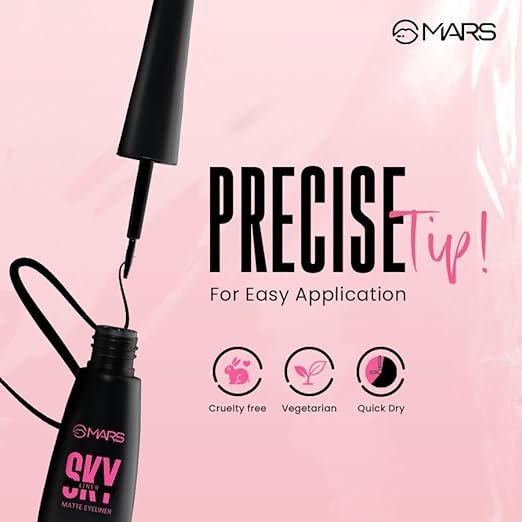 MARS Skyliner Liquid Matte Eyeliner for Women | Long Lasting & Water Resistant | Precise Application | Matte Finish | Smudge Proof | Transfer Proof upto 12 hrs (4.5ml) (Black)