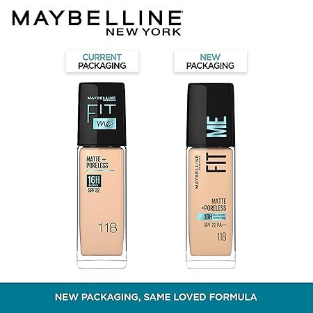 Maybelline New York Fit Me Matte + Poreless Liquid Foundation, , Matte Finish and pore minimizing Foundation, lightweight formula suitable for daily use and Indian Skin - 118 Light Beige, 30 ml