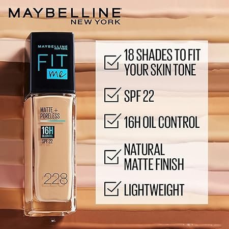 Maybelline New York Liquid Foundation, Matte Finish, With Spf, Absorbs Oil, Fit Me Matte + Poreless, 238 Rich Tan, 30 Ml - Medium
