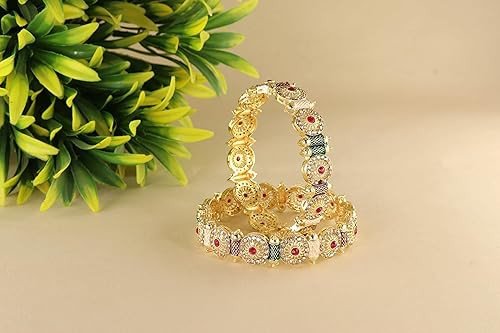 NMII's Traditional Gold Plated Alloy Metal Bangles Kada Set For Women & Girls. These Metal Bangles Set is Perfect to wear on Weddings, Party, Anniversary, Occasion, & Daily wear. It is Crafted from high-quality Metal Material & Zircon Diamond Stones. These are durable and features a vibrant color symbolizing love, passion, and new beginnings. The intricate design showcases NMII's skillful craftsmanship, ensuring you shine on your special day. The set also doubles as a versatile piece of bridal jewelry, complementing a wide range of outfits, including classic sarees and modern lehengas. NMII prides itself on offering the finest quality, timeless style, and unwavering commitment to tradition. The set is designed to make your day extra special, ensuring you look and feel your best. Elevate your bridal ensemble with NMII's Bangles Set and make memories that will last a lifetime. These NMII's Designer Bangles Set Have a Premium Finish and are Perfect for Weddings, Engagements, Functions, Festival, Rituals and Events. The Brand NMII sells all types of Glass Bangles, Metal Bangles, Acrylic Bangles, Chuda Sets, Kaleera Latkan Sets, Kadas, Bracelets, Women and Girls Traditional to Modern Jewellery, and many More. And Please Refer to our Size Chart to Know your Hand Size Precisely. To maintain longevity, clean bangles with a smooth cotton cloth, avoid direct water, perfume, deodorant, sunlight, and chemicals, and store them in an airtight zip-lock pouch. Thank You For Choosing NMII's Metal Bangles Collection. We are selling on Amazon Since 2016.