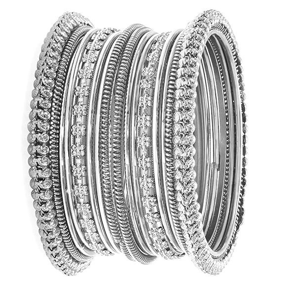 Add a touch of timeless elegance to your jewellery collection with this oxidised silver plated bangle set. Designed to suit both traditional and contemporary styles, this bangle set is perfect for enhancing your everyday ethnic wear as well as festive outfits.