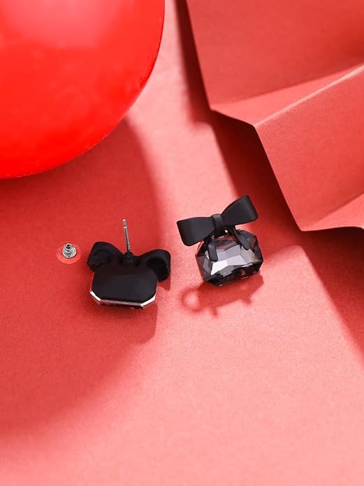 These chic Black Bow Crystal Stud Earrings are a perfect blend of elegance and modern fashion. Designed with a matte black bow on top and a faceted crystal drop below, these earrings add a bold yet classy statement to your look.