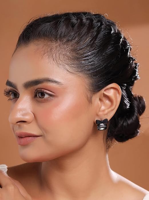 The deep smoky crystal finish reflects light beautifully, making them ideal for evening wear, parties, and special occasions. Lightweight and comfortable, these studs can also be styled with casual outfits for a trendy, edgy touch.