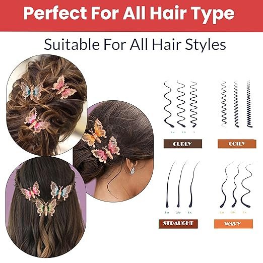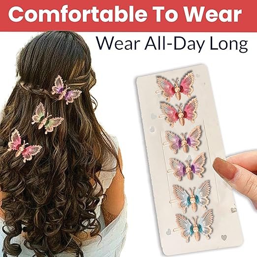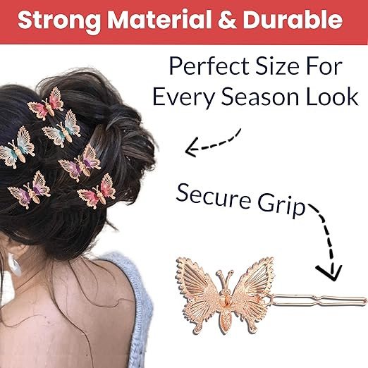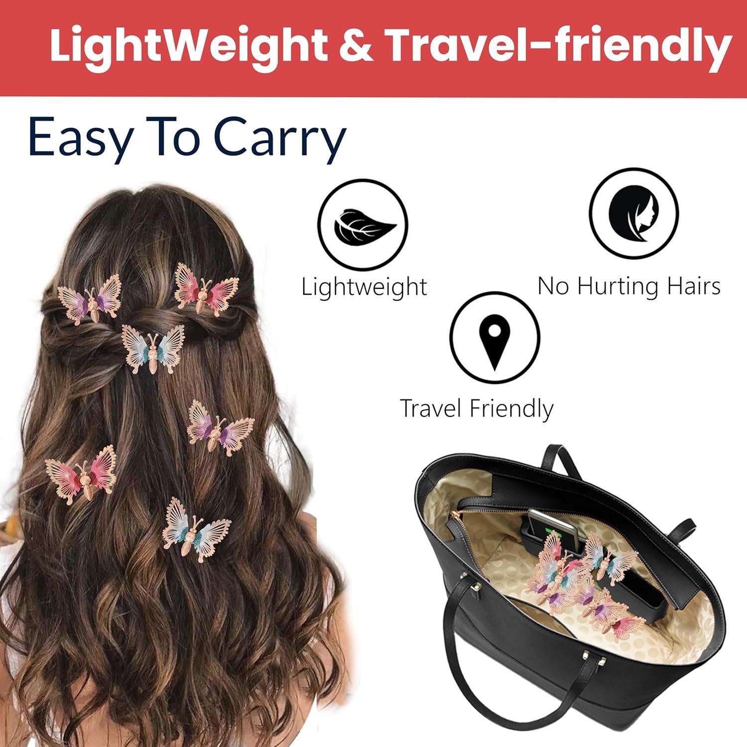 Temperia Hair Accessories Women Stylish Wedding & Parties-Hair Pins Women & Girls-Butterfly Hair Style Bridal Brooch & Braid Juda Bun-Hairstyle Decoration Bride Clips-Pack Of 6 - Multicolor