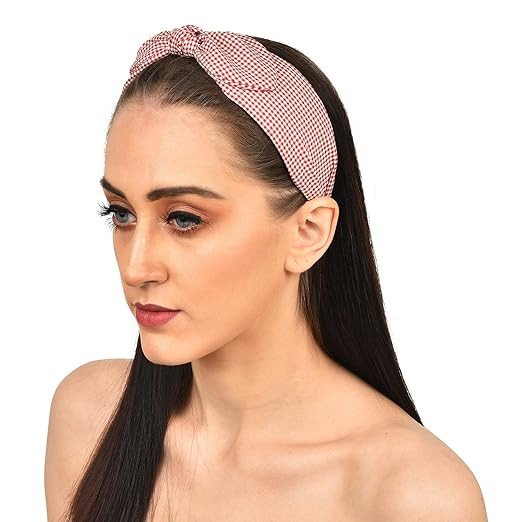 Vogue Hair Accessories Printed Fabric Knot Metal Hairband Headband for Women and Girls (Red_Check_Bow)
