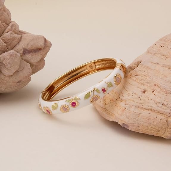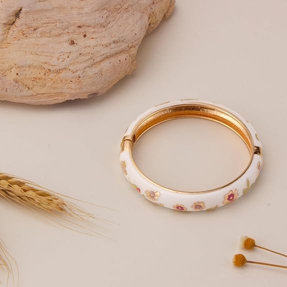 UJOY Womens Colorful Enamel Bangle Bracelet With Gift Box (White Flower)