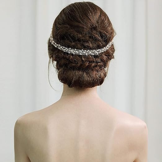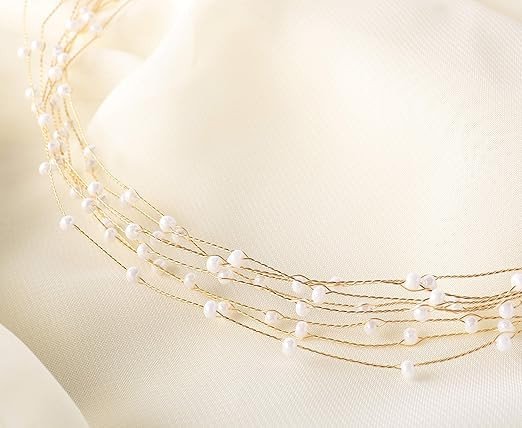 Shidara 1 pcs Premium Bridal Headpiece Wedding Headband - Pearl Vintage Wedding Hair Bands for Brides with Lace Ribbon (White Beads)