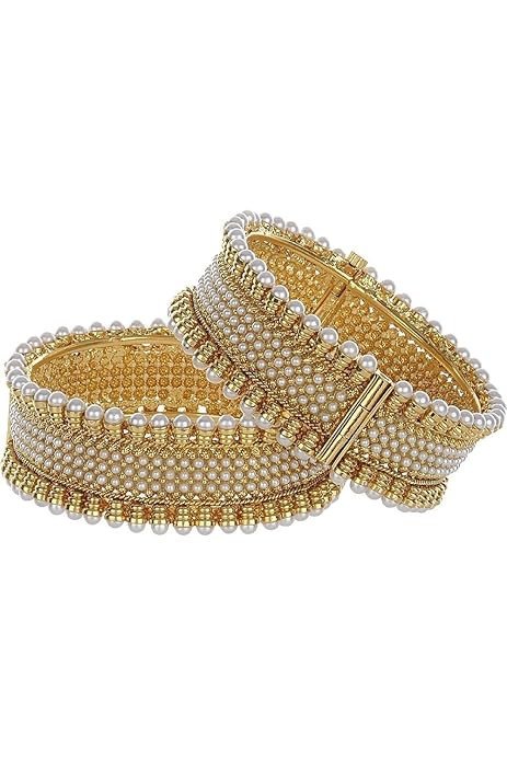 YouBella Jewellery for women Traditional Pearl Studded Gold Plated Bangles for Women and Girls