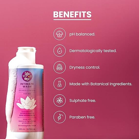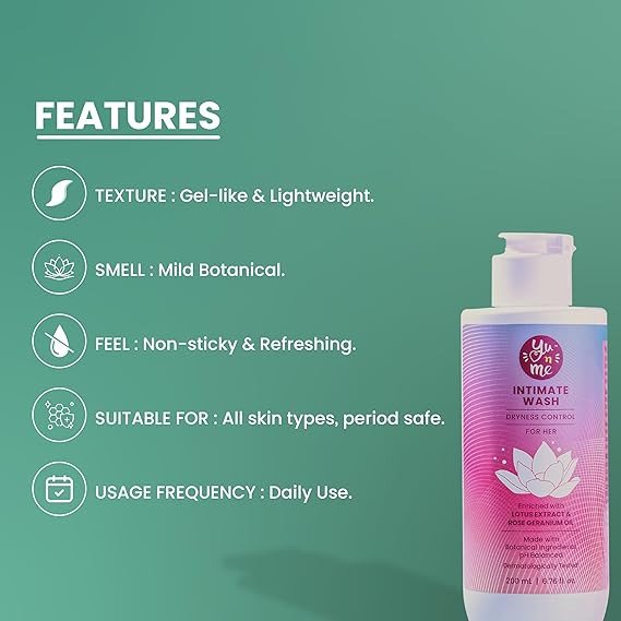Experience gentle care and all-day comfort with cYu n Me Dryness Control Intimate Wash. Specially formulated for women, this feminine hygiene cleanser helps maintain the natural pH balance of the vaginal area, providing relief from dryness and discomfort. Enriched with Lotus & Rose Geranium extracts, it nourishes and soothes the delicate skin while keeping you fresh and confident.