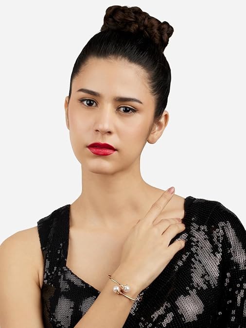 ZAVERI PEARLS Rose Gold Tone Dazzling Cubic Zirconia & Pearls Embellished Brass Kada Style Bracelet For Women-ZPFK17184