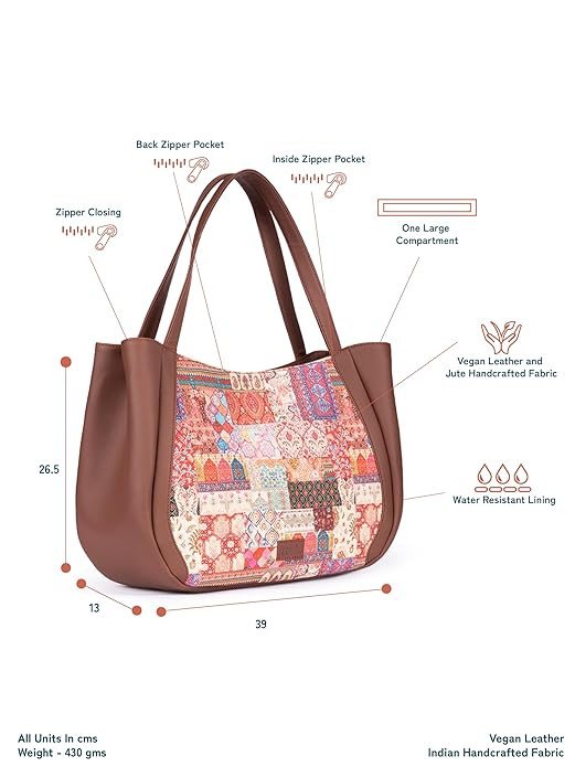 ZOUK Jute Handcrafted Vegan Leather Women's Shoulder Luna Handbags